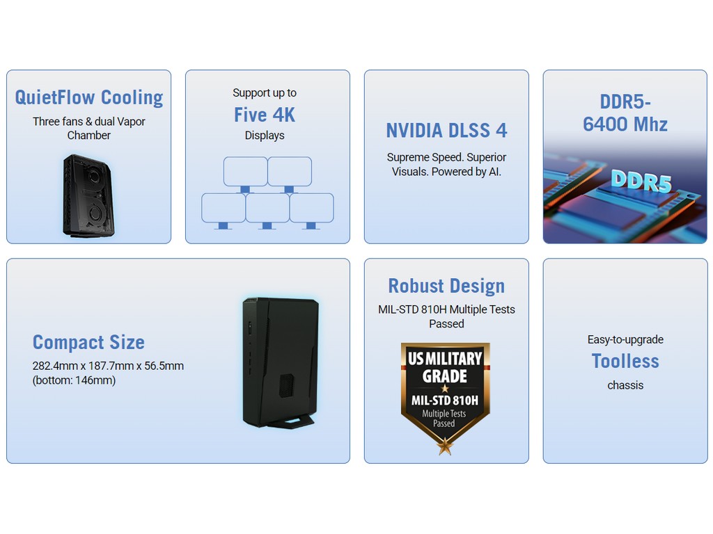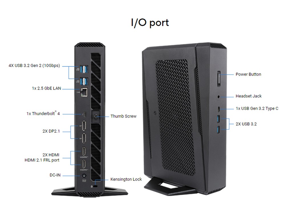 | Интерфейсы | Front I/O Ports: 1 x USB 3.2 Gen2x2 Type-C,2 x USB 3.2 Gen2 Type-A / Back I/O Ports: 1 x Thunderbolt 4 Type-C w/ DisplayPort 1.4, 4 x USB 3.2 Gen 2 Type-A, 2 x DP 2.1, 2 x HDMI 2.1 (TMDS), 1 x RJ45 LAN |