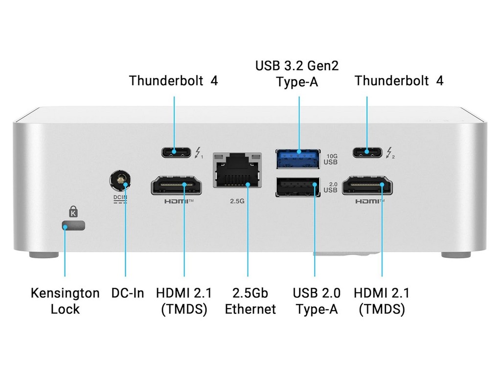| Интерфейсы | Front I/O Ports: 1 x USB 3.2 Gen2x2 Type-C,2 x USB 3.2 Gen2 Type-A / Back I/O Ports: 2 x Thunderbolt 4 Type-C w/ DisplayPort 1.4, 1 x USB 3.2 Gen 2 Type-A, 1 x USB 2.0 Type-A, 2 x HDMI 2.1 (TMDS), 1 x RJ45 LAN |