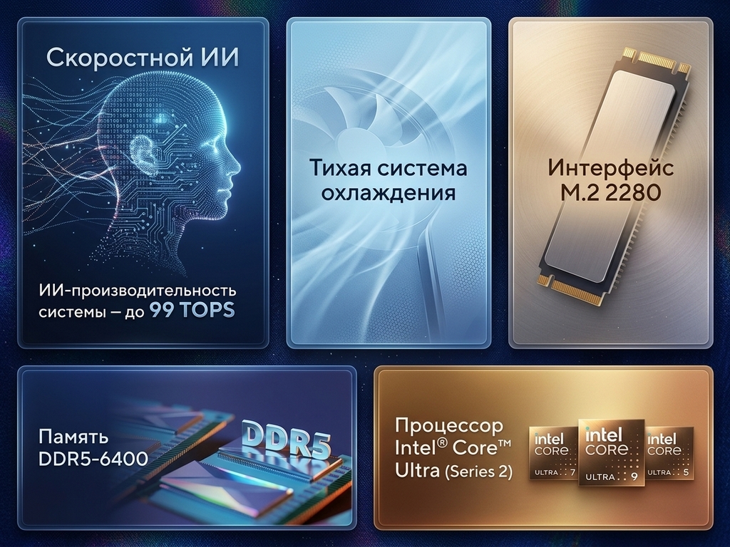 | Сетевые интерфейсы | 1 x Intel® Ethernet Controller I226-V/LM, 2.5G, Intel® Wi-Fi 7 BE201, Bluetooth 5.4 |
